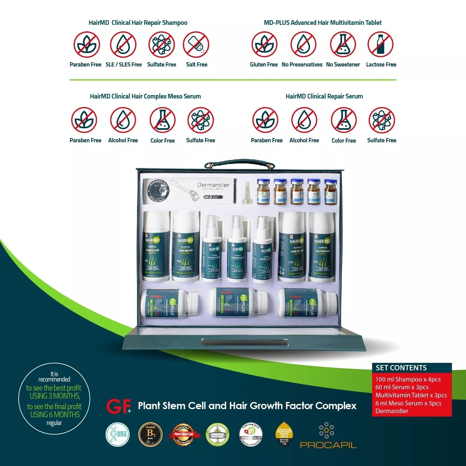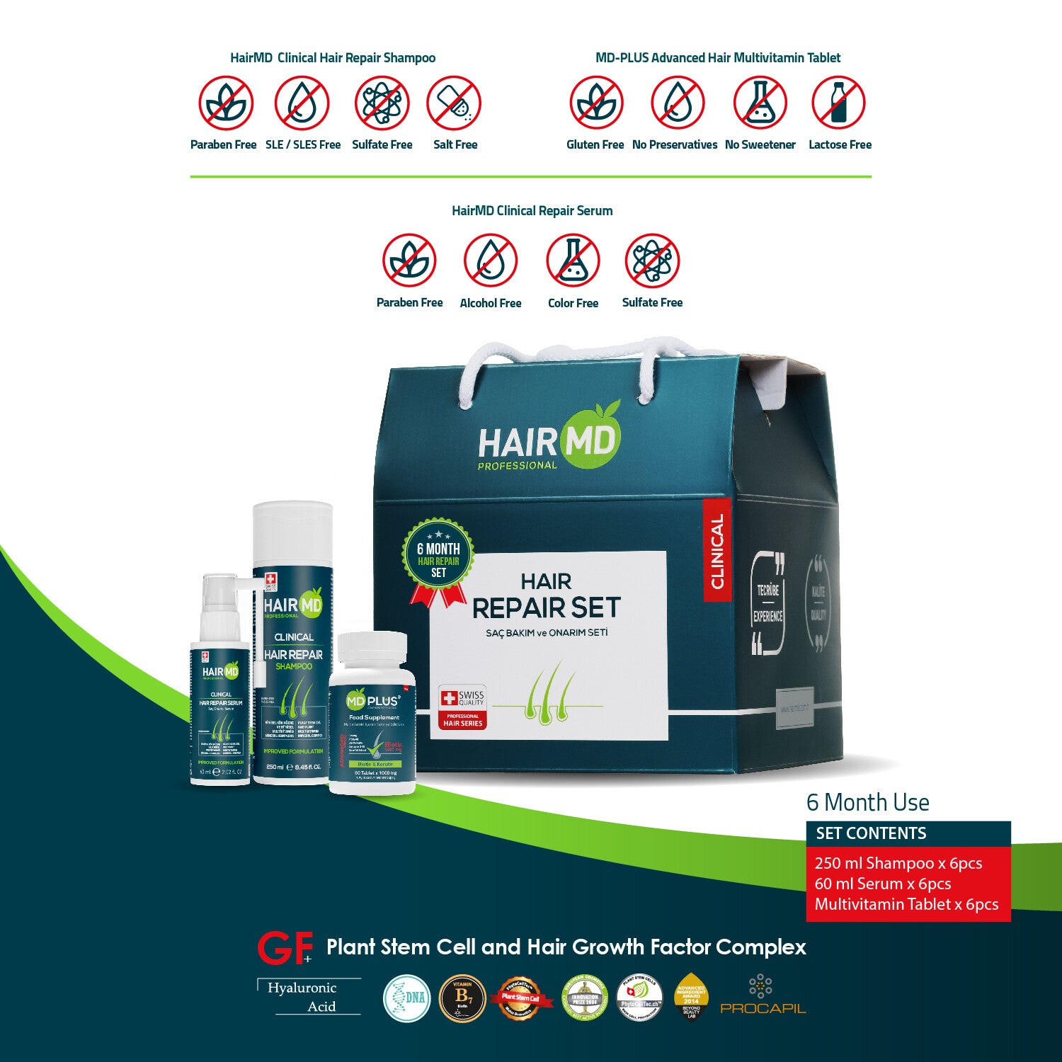 HairMD Clinical Hair Repair Set (3 month Use) ( 3 Shampoo 250 ml + 3 Serum 60 ml + 3 Hair Multivitamin)