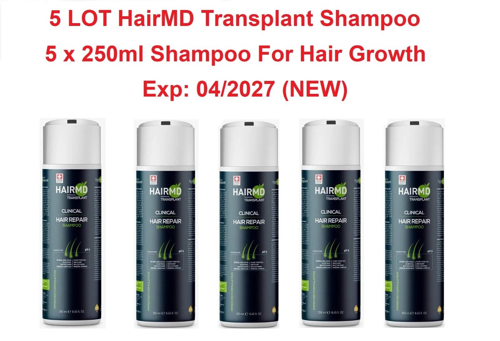 5 LOT HairMD Transplant Clinical Hair Repair Shampoo (5x250ml)