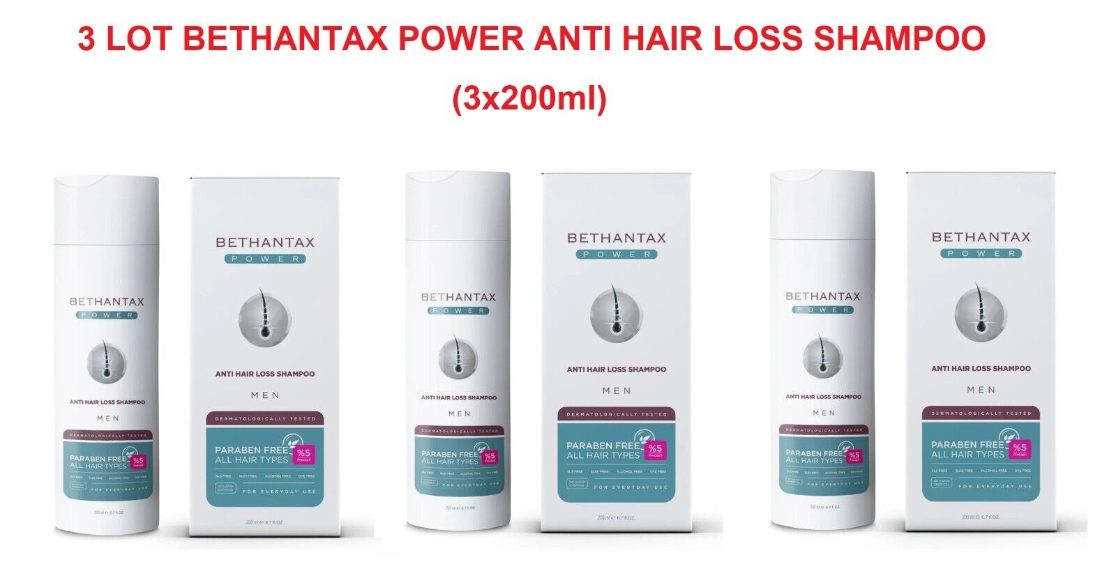 3 LOT Bethantax Power Anti Hair Loss Shampoo (3x200ml)